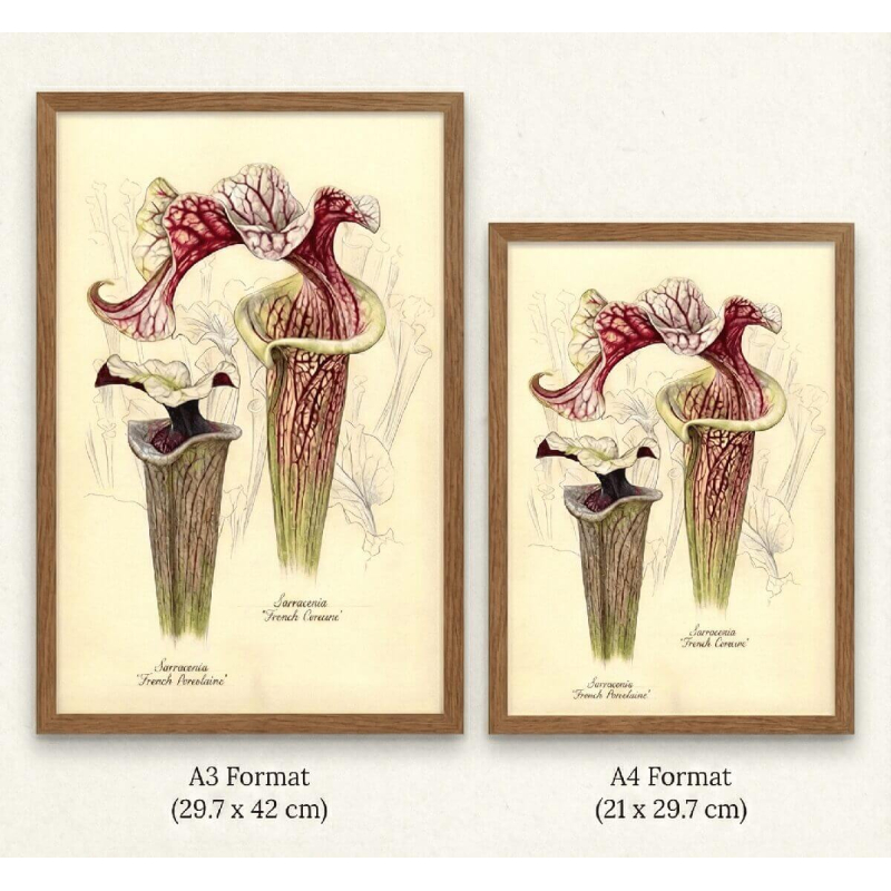 Botanical elegance immortalized by Cédric Azaïs. This original print showcases two spectacular cultivars of carnivorous plants: Sarracenia 'French Cancan' and Sarracenia 'French Porcelaine'.