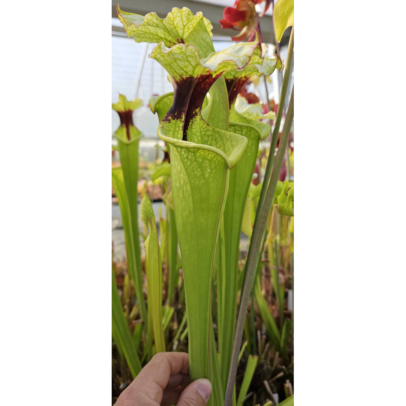SL13 Sarracenia leucophylla -- large pink lipped,Apalachicola x SX102 S.x areolata giant CLA
