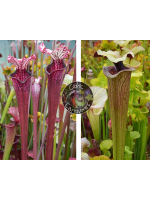 (SL69 S. leucophylla -- Stocky white top x SL13 S. leucophylla -- large pink lipped,Apalachicola) X Sarracenia 'Iamsatyricon', 35 graines.