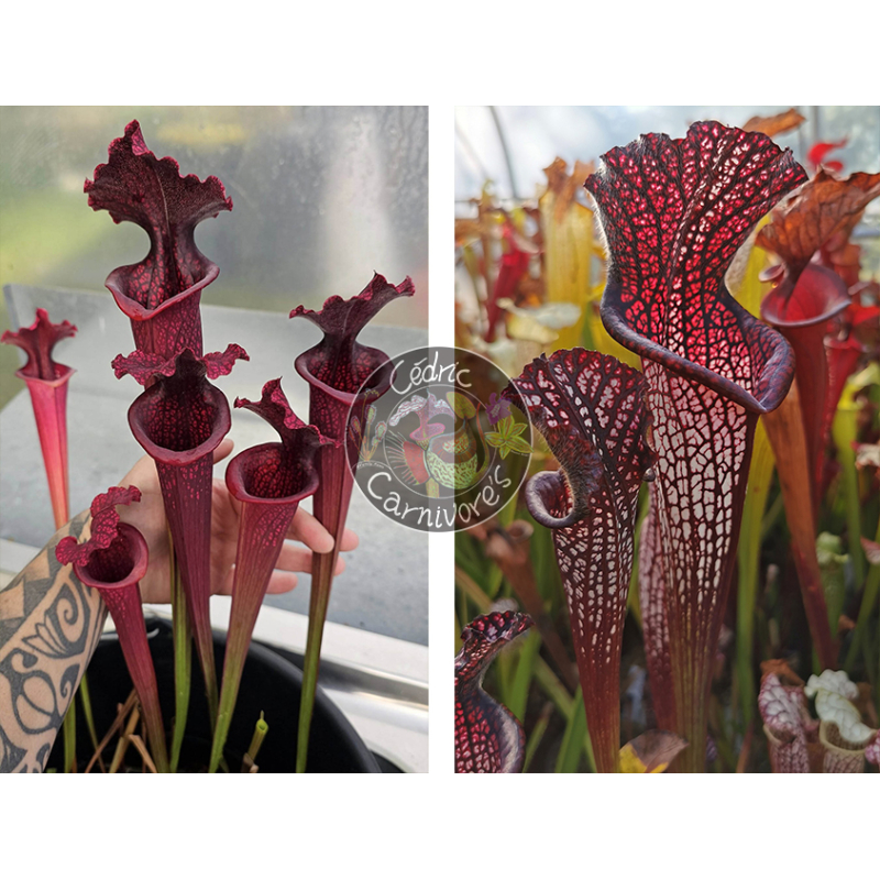 Sarracenia x “SX113A” “Norman Parker x Leucophylla Burgundy” x S. leucophylla -- black sheer, 35 graines.